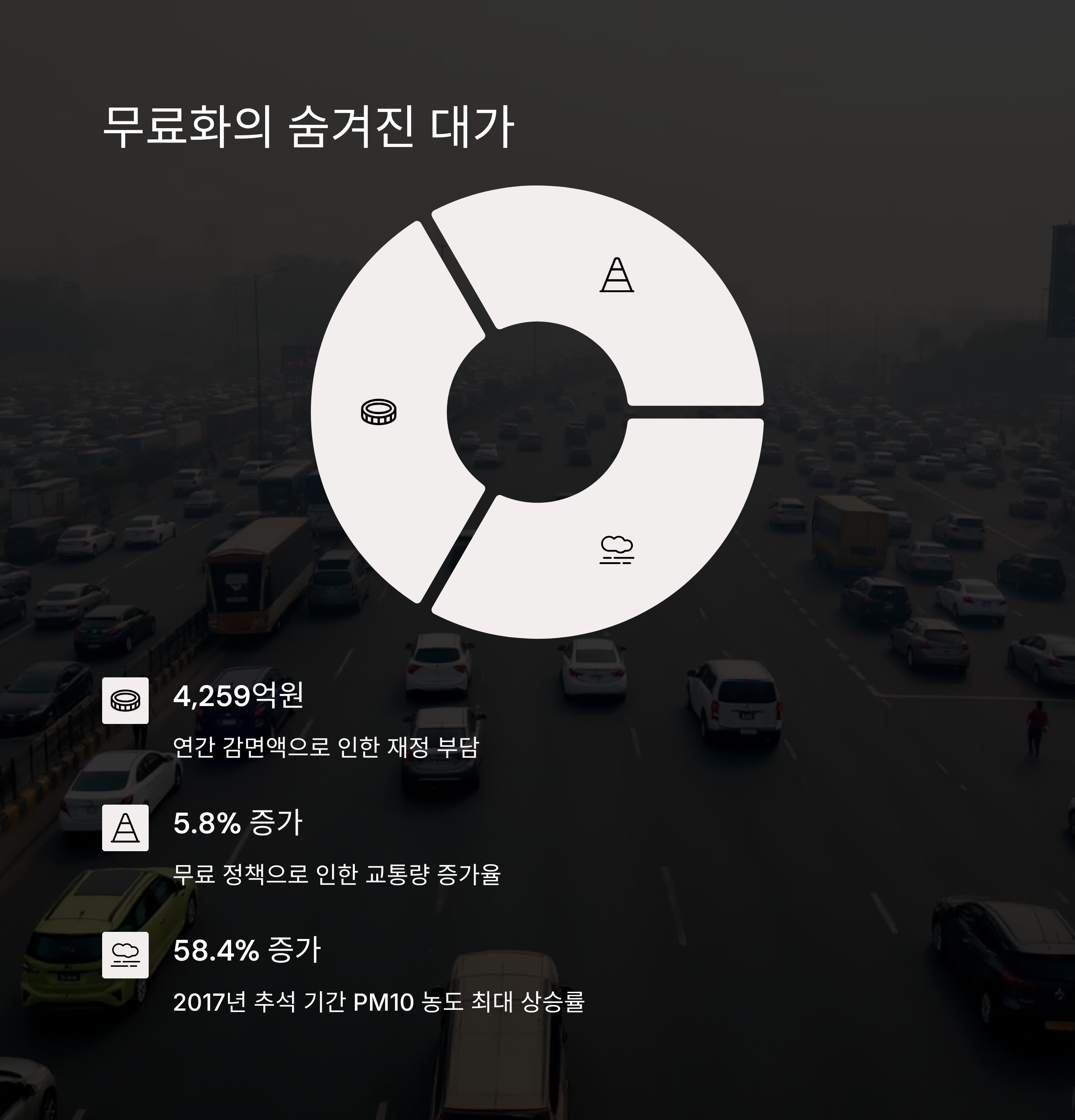 | 고속도로 무료화 | 재정 부담 | 교통 혼잡 |