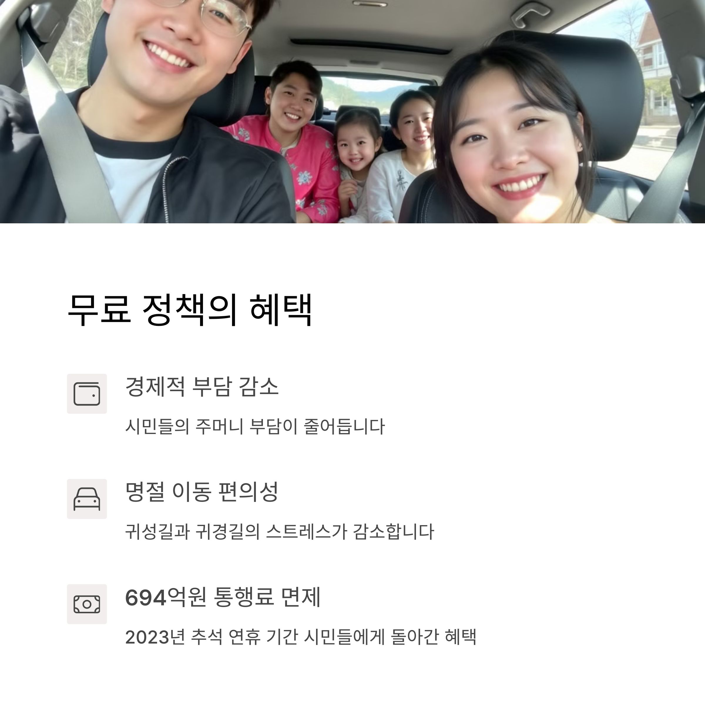 | 통행료 없이 이용 가능한 고속도로 정책 | 세금으로 운영비용 보전 필요 | 이용자 급증에 따른 정체 및 환경 문제 발생 |