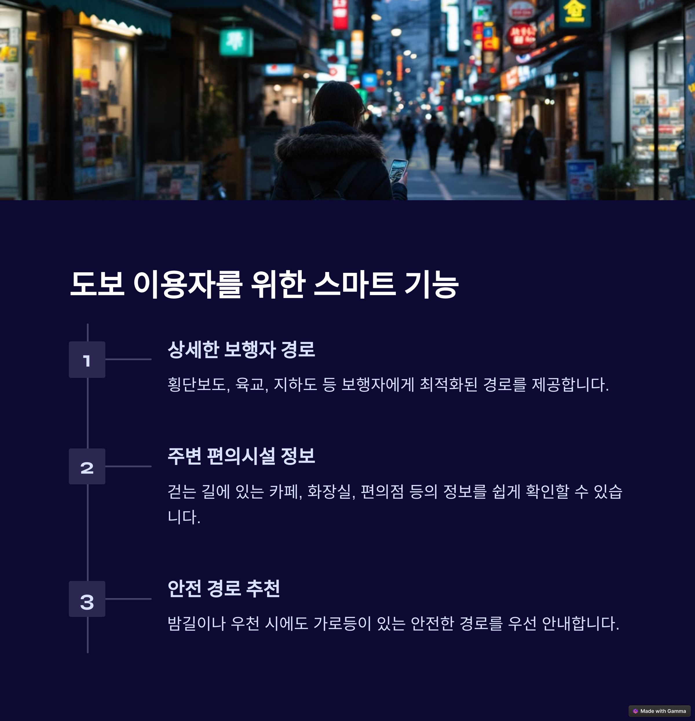 | 길찾기 정확도 | 실시간 정보 | 교통비 계산 |