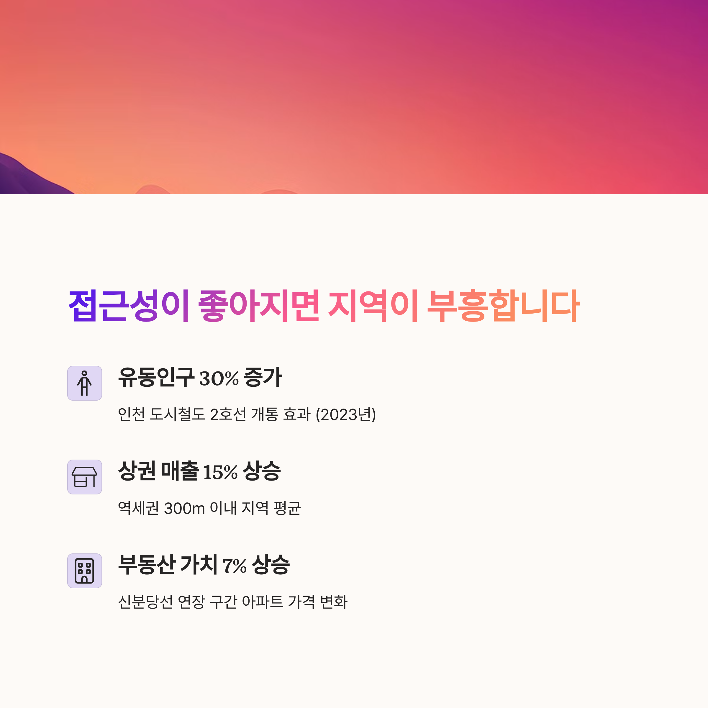 | 교통망 변화가 도시 성장 축으로 작용 | 접근성과 소비가 경제 순환 자극 | 신설 노선 주변의 부동산 가치 상승 |