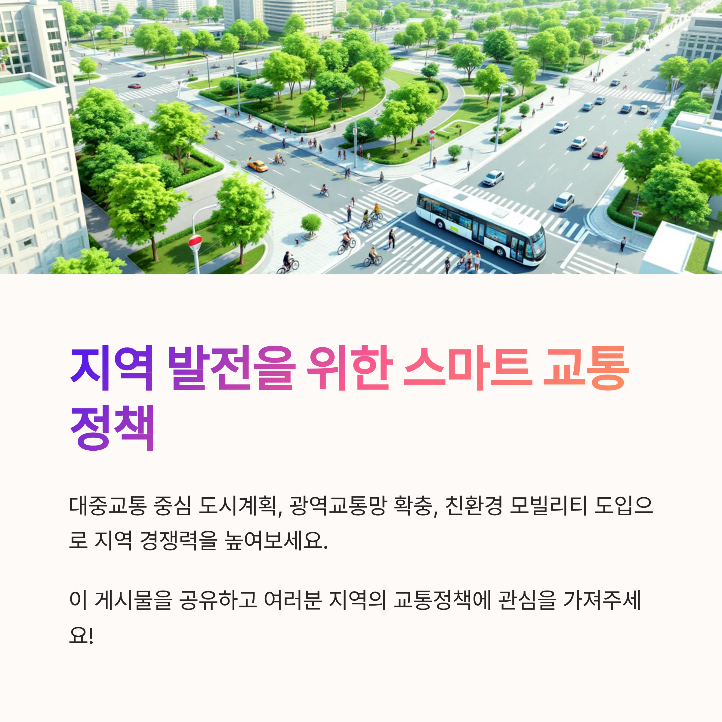 교통정책으로 인해 여러분의 지역이 어떻게 변했나요? 실생활에서 느낀 변화나 경제적 효과를 댓글로 남겨주세요. 함께 이야기 나누며 더 나은 정책 방향을 고민해봐요.