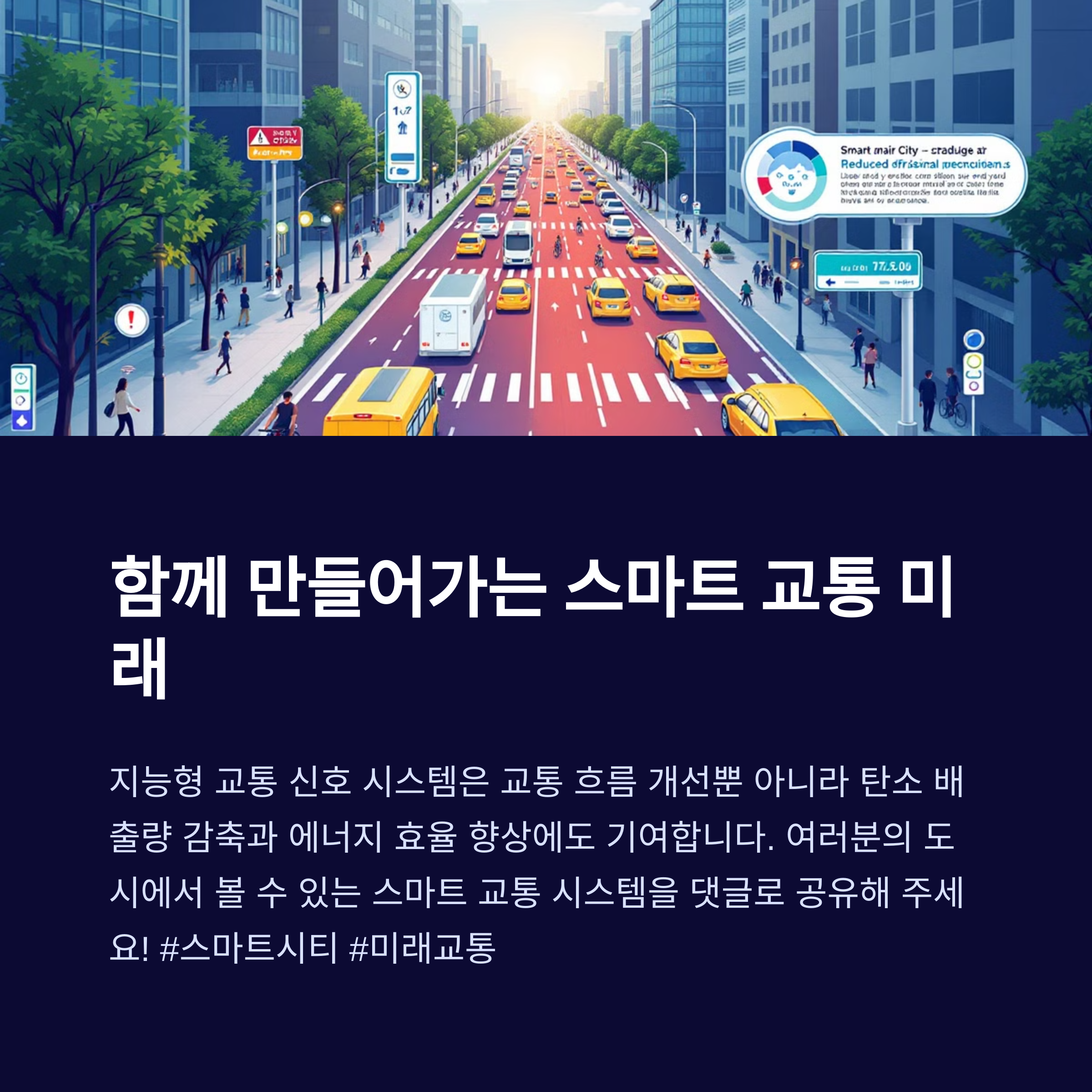스마트시티 교통 시스템에 대해 어떻게 생각하시나요? 실제로 겪어본 스마트 신호 경험이나, 기대되는 기능이 있다면 댓글로 함께 공유해 주세요.