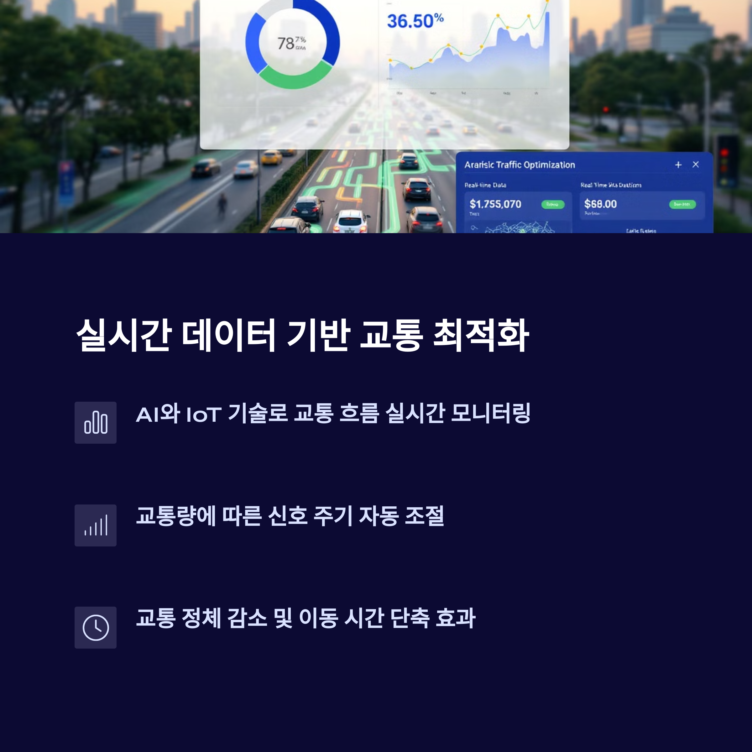 | AI와 센서를 통한 신호 최적화 | 스마트시티 기반 인프라 연동 필수 | 교통 효율과 환경 개선에 동시 기여 |