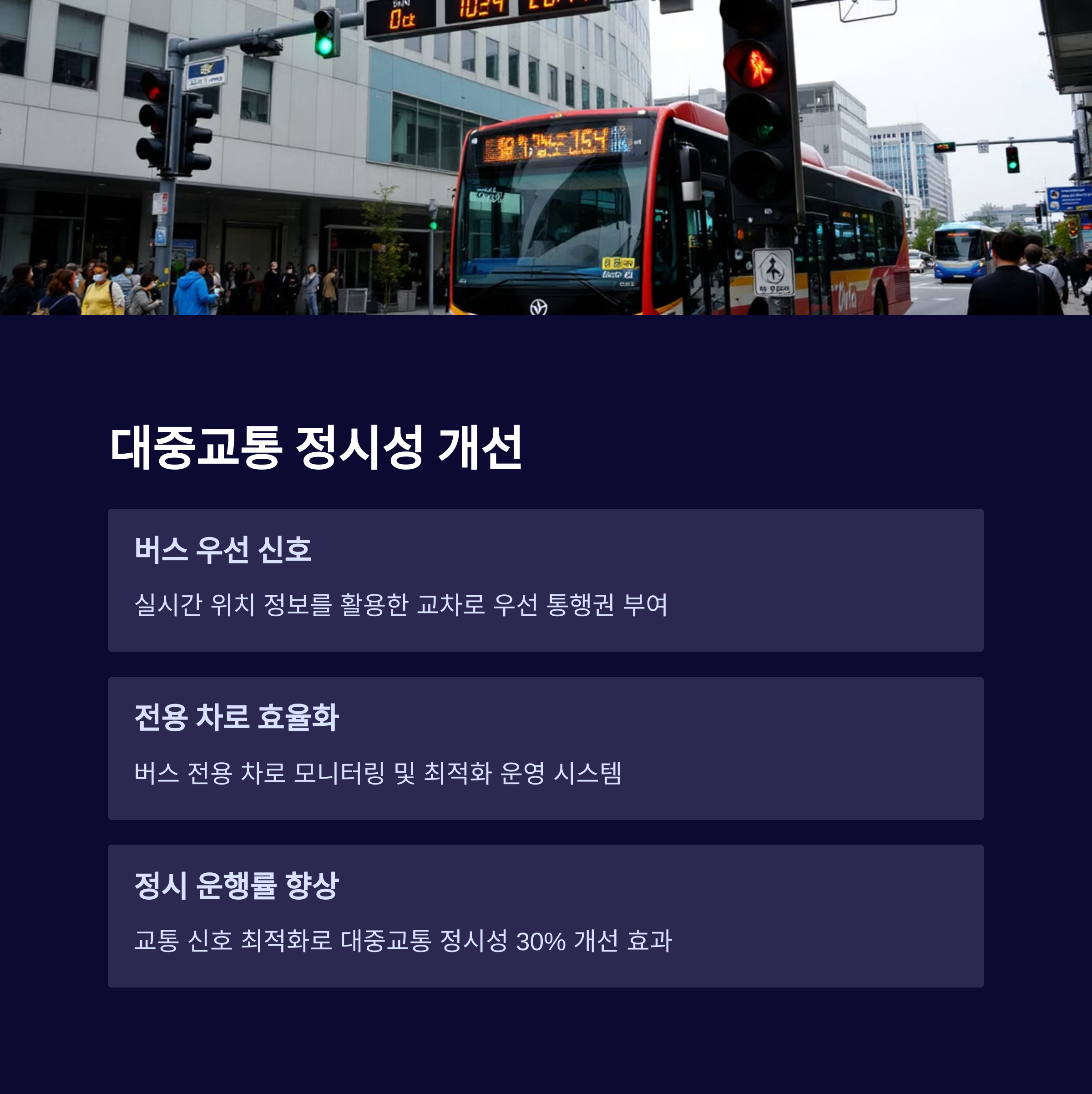 | AI와 센서를 통한 신호 최적화 | 스마트시티 기반 인프라 연동 필수 | 교통 효율과 환경 개선에 동시 기여 |