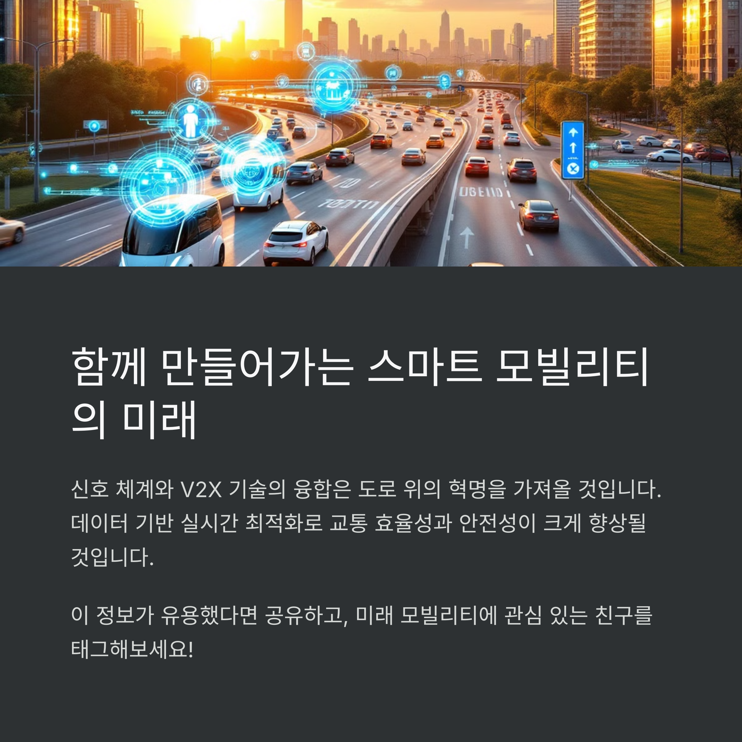 자율주행 기술의 발전은 분명 새로운 시대의 시작입니다. 하지만 기존의 교통체계를 완전히 대체하는 것이 아니라, 기술과 제도가 조화롭게 융합되는 방향으로 나아가는 것이 중요합니다. 자율주행차는 신호등, 표지판, 도로 이용자들과의 연결성과 소통을 기반으로 해야 하며, 스마트 인프라의 발전은 이러한 공존을 가능하게 합니다. 변화의 속도보다 중요한 건, 모두가 안전한 방향으로 나아가는 것임을 잊지 말아야 합니다.