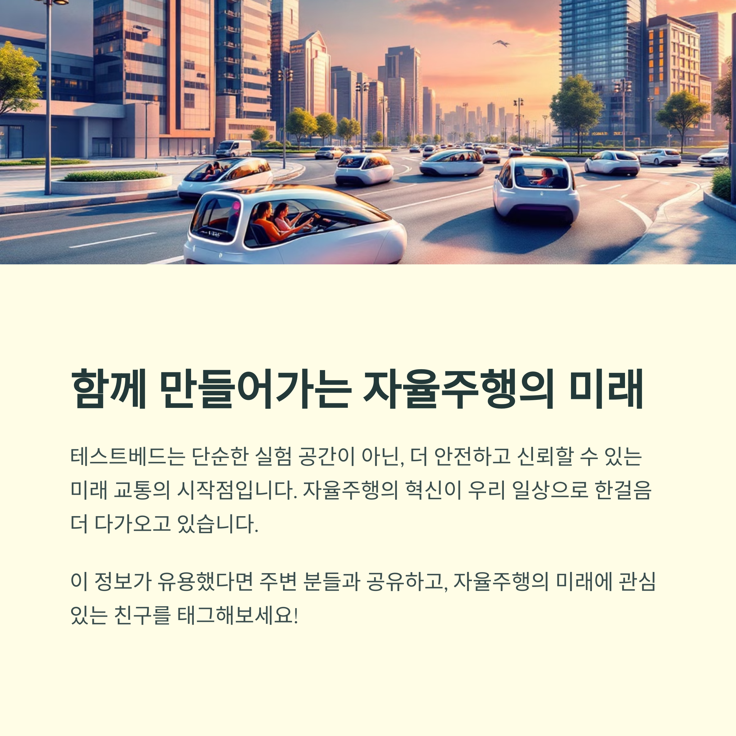 오늘 이 글에서는 자율주행 테스트베드의 역할과 그 안에서 벌어지고 있는 흥미로운 상황들, 그리고 향후 자율주행이 어떤 방향으로 나아가고 있는지 함께 알아보겠습니다.